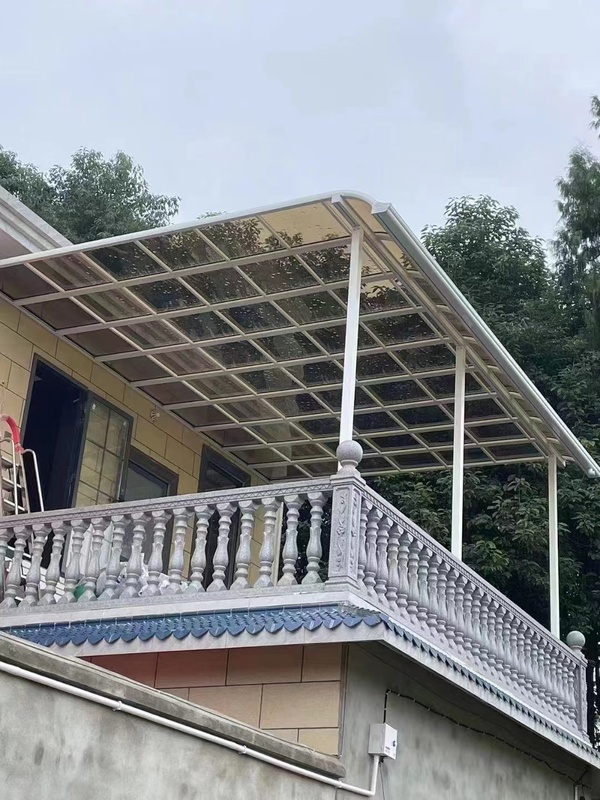 这类雨棚广泛应用于自建房、别墅、公寓的阳台、露台、入户门头等位置,是提升居住品质和实用性的常见户外设施。